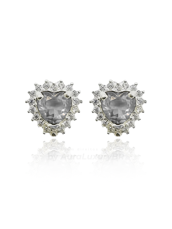 Brinco Coração Cristal Cravejada (Prata 925) (2X1)