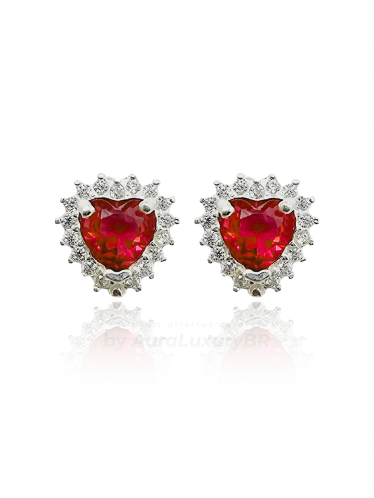 Brinco Coração Vermelho Cravejada (Prata 925) (2X1)