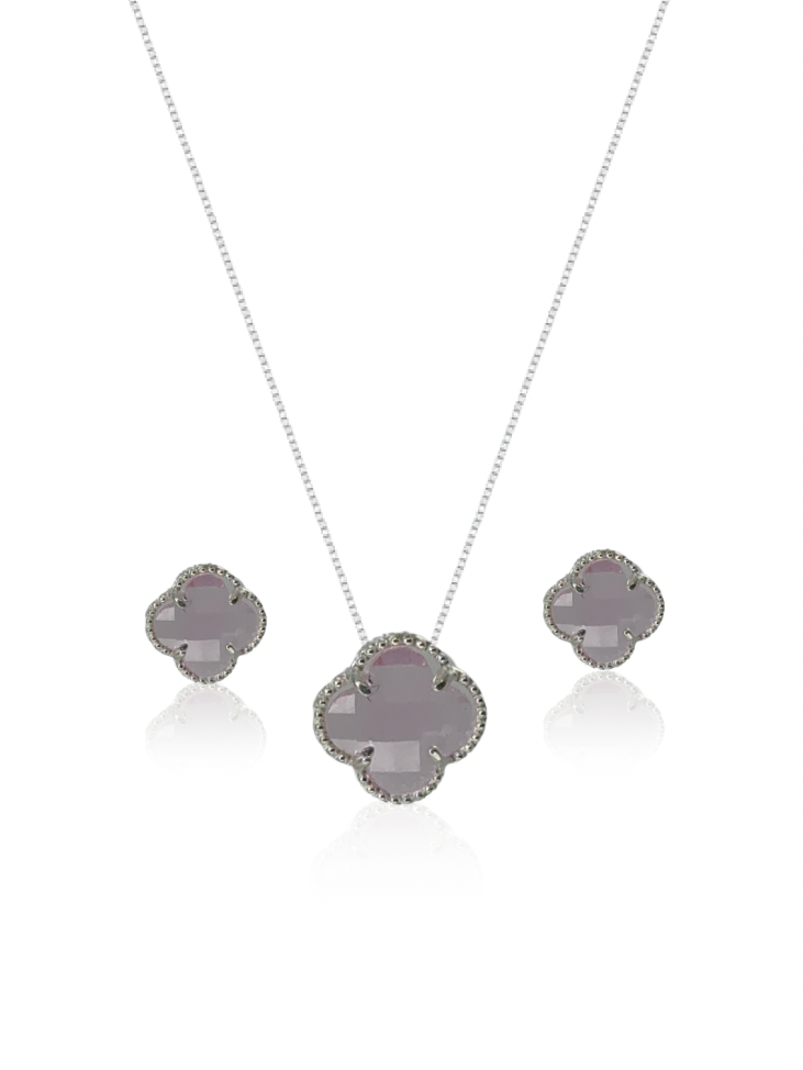 Colar Gargantilha Trevo Rose + Par de Brinco Trevo Rose (Prata 925) (2X1)