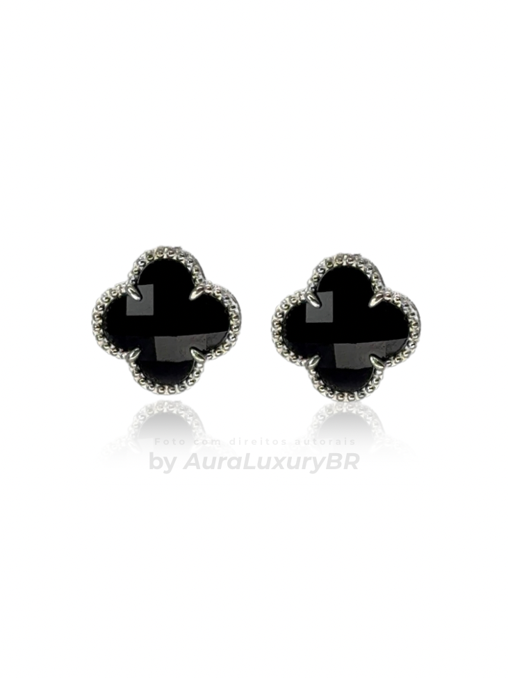 Par de Brincos Trevo Preto (Prata 925) (2X1)