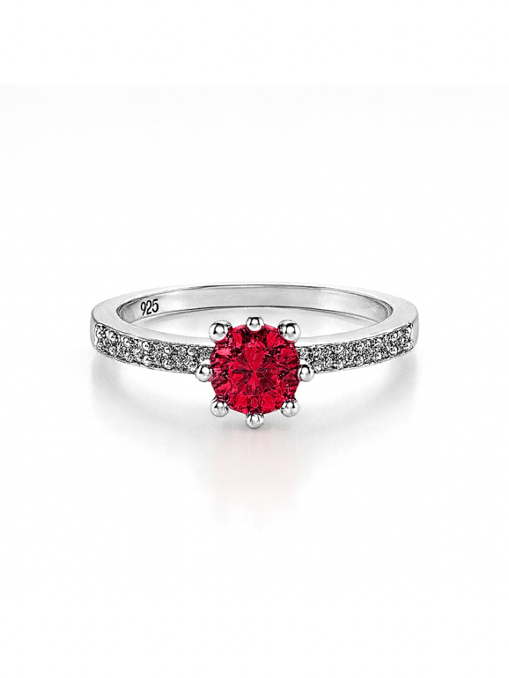 Anel Solitário Milano Vermelho Cravejado (Prata 925)