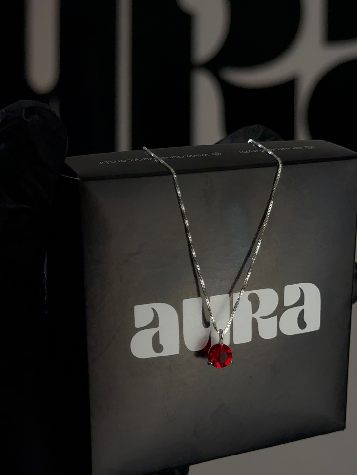 Colar Veneziana Ponto De Luz Cristal - Vermelho (Prata 925)
