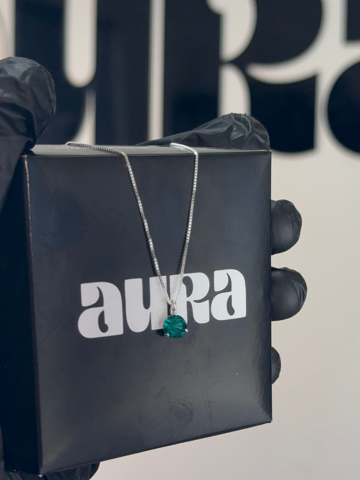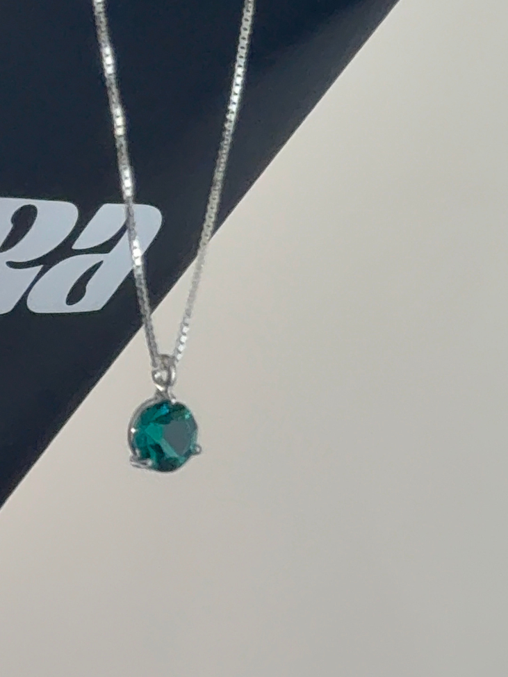 Colar Veneziana Ponto De Luz Cristal - Verde (Prata 925)