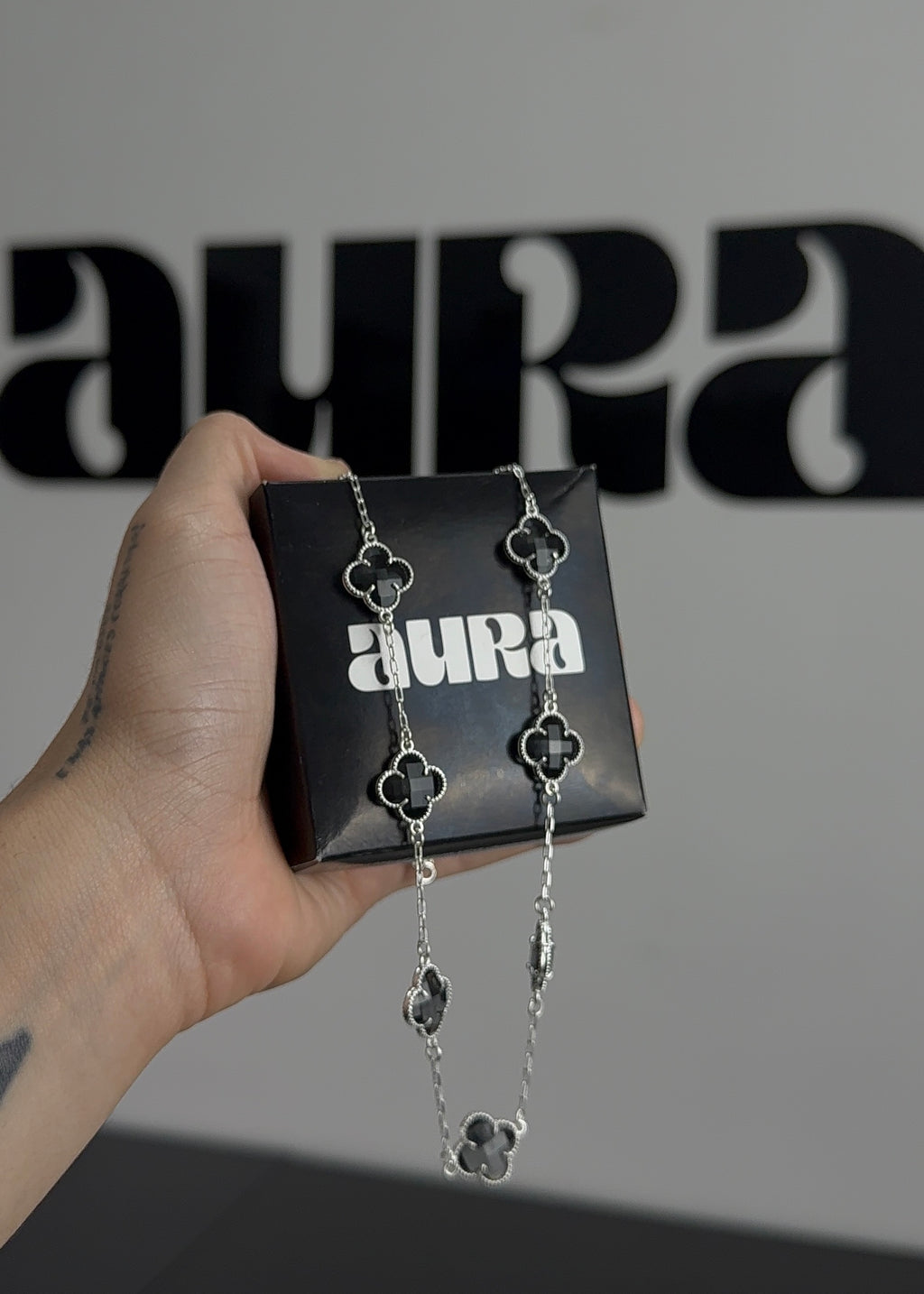 Colar 7 Trevos Preto – Aura Luxury